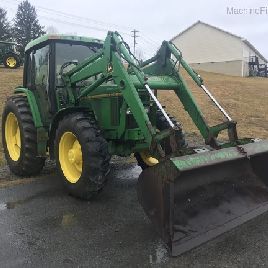 The 85-horsepower (63.4 kW) JD 6400 is fitted with a JOHN DEERE CD4045 turbocharged diesel engine. This four-cylinder, 4.5-litre engine is liquid cooled and includes a fuel pump. The standard JOHN DEERE SyncroPlus transmission on the tractor is the fully synchronised. Certain used JOHN DEERE 6400 tractors may have optional JOHN DEERE PowrQuad transmission, a partial power shift alternative with four gears in four synchronised ranges and a power shuttle. This offers operators 16 forward and reverse gears, compared to 12 forward and four reverse gears on the standard model. Other JOHN DEERE 6400 specifications include a Category II three-point hitch with lower link control and a rear lift capacity of 5,915 pounds (or 2,683 kilograms). The 6400 JOHN DEERE has two- or four-wheel drive. Closed-centre pressure flow compensated hydraulics, hydrostatic power steering, and hydraulic wet disc brakes are also included. JOHN DEERE 620, 640NSL and 640SL loaders are compatible with this farm tractor, as well as other JOHN DEERE 6400 equipment.